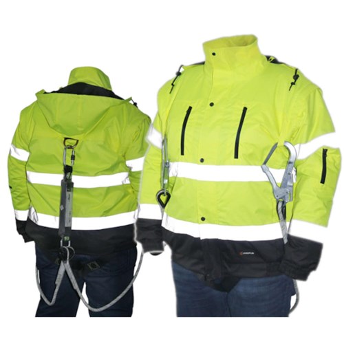 Jest to idealna kurtka do pracy w niepogodę i w chłodniejsze miesiące dla osób pracujących na wysokościach, a więc m.in. dla monterów fotowoltaiki, cieśli i pracowników na rusztowaniach. Może być ona oczywiście używana bez szelek, jako ochronna kurtka, zwłaszcza, że została wykonana z wodoodpornego materiału, jest ocieplana i posiada odblaskowe kolory. Ponadto została wyposażona w wiele kieszeni, co jest niezwykle praktyczne przy przechowywaniu podręcznych narzędzi. W okresie wiosennym kurtka może służyć jako kamizelka, ponieważ istnieje możliwość odpięcia rękawów i kaptura.