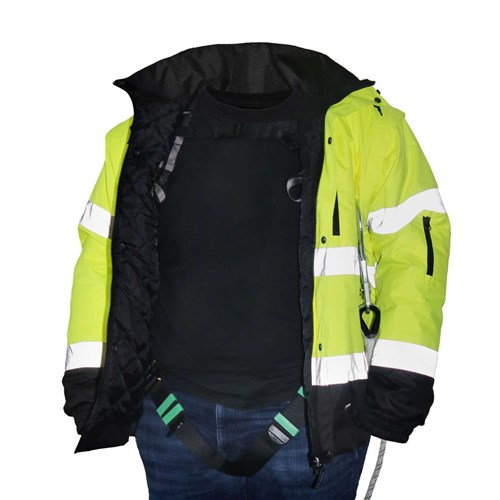 Jest to idealna kurtka do pracy w niepogodę i w chłodniejsze miesiące dla osób pracujących na wysokościach, a więc m.in. dla monterów fotowoltaiki, cieśli i pracowników na rusztowaniach. Może być ona oczywiście używana bez szelek, jako ochronna kurtka, zwłaszcza, że została wykonana z wodoodpornego materiału, jest ocieplana i posiada odblaskowe kolory. Ponadto została wyposażona w wiele kieszeni, co jest niezwykle praktyczne przy przechowywaniu podręcznych narzędzi. W okresie wiosennym kurtka może służyć jako kamizelka, ponieważ istnieje możliwość odpięcia rękawów i kaptura.