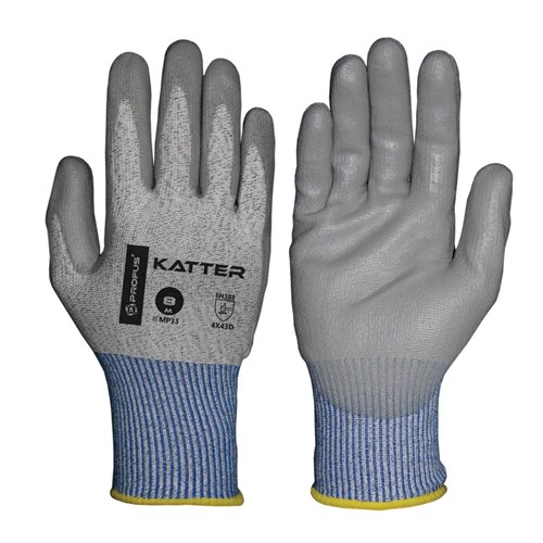 Rękawice ochronne antyprzecięciowe KATTER zostały wykonane ze specjalnej struktury włókien, która zapewnia wysoką odporność na przecięcia. Elastyczny materiał rękawic sprawia, że są one doskonałe do prac manualnych. KATTER polecane są zwłaszcza w pracach montażowych, gdzie występuje ryzyko urazu dłoni i potrzebna jest ochrona nie krępująca ruchów palców.